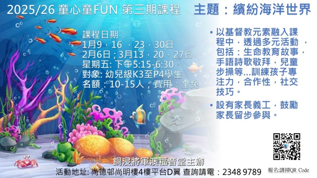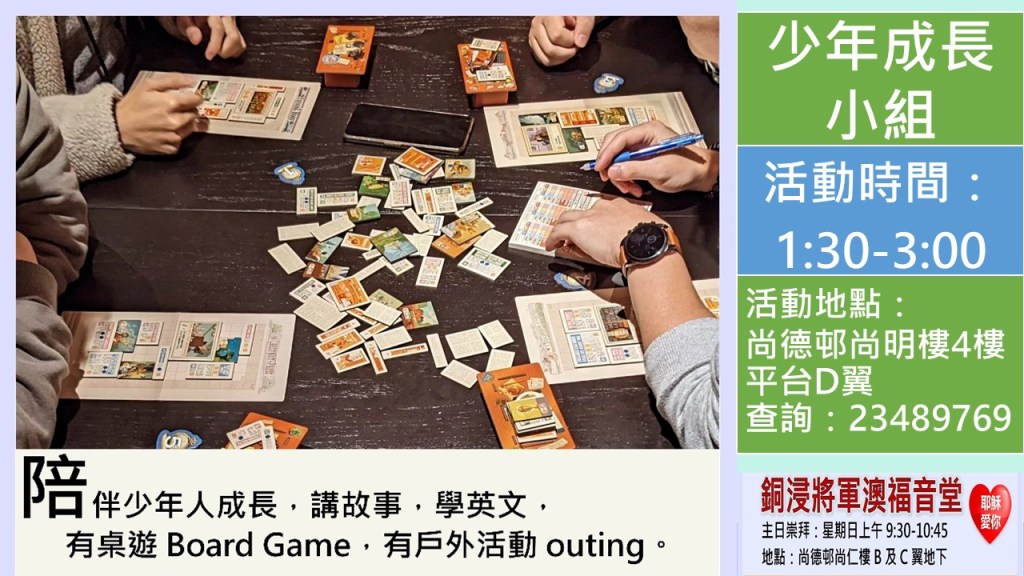 首頁 年終感恩暨愛筵 日期:12 月 28 日(日) 時間:11:00-12:00 地點:尚仁樓 全年事工簡介會 日期:1 月 4 日(日) 時間:11:00-12:30 地點:尚仁樓 專題祈禱會 題目:我的特色簡介 日期:1 月 7 日(三) 時間:20:30-21:30 形式:Zoom